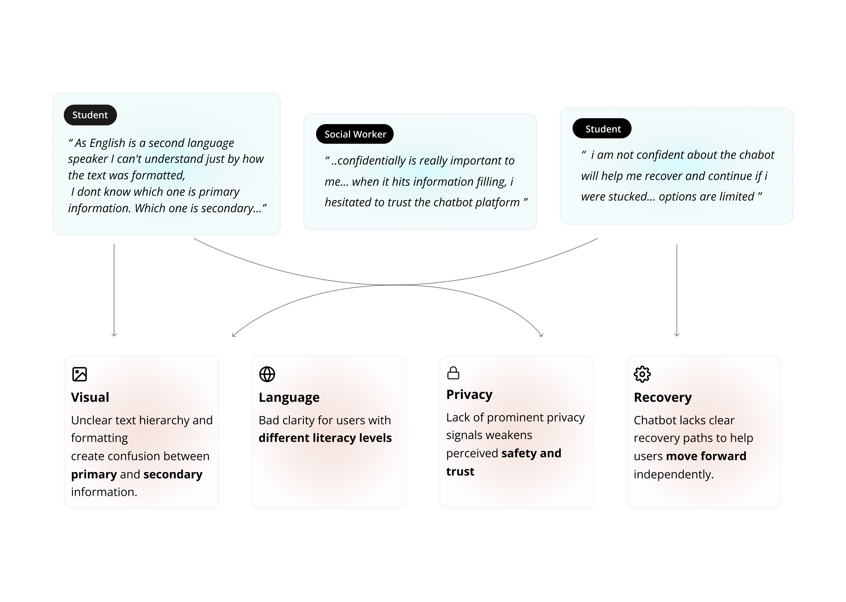 In a government service context, fallback moments are not just system errors — they are moments of user frustration and uncertainty. Instead of relying on vague “I didn’t understand” responses, I redesigned the chatbot recovery experience to guide users toward the closest relevant service pathways.